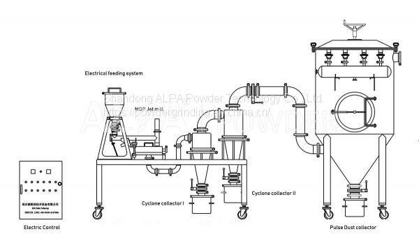 Jet Mill works with cyclone separator, dust collector and suction fan to form a complete grinding system.