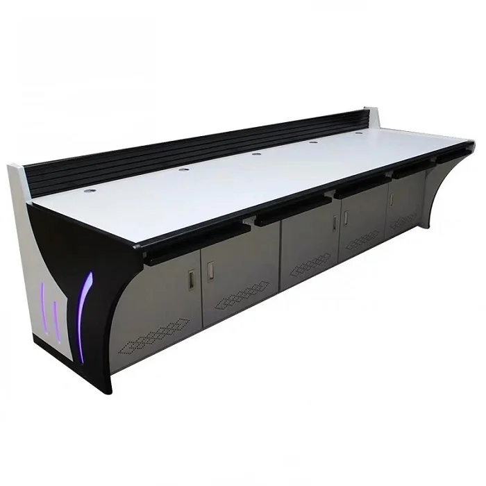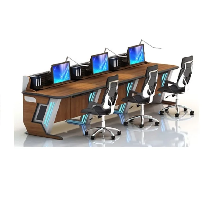 New Design Customized Industrial Broadcast Sheet Metal Fabrication Security Control Room Console Command Center Furniture Monitor Console Equipment Console Worktop Operating Platform Industrial Control Operating Desk With LED Lamp