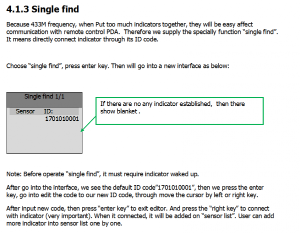 *Sensor select. It is for wake up indicator sensor. and searching indicator sensor. Then choose indicator. Note: “wake up” means to open indicator sensor 433M port, make it into communication state. “search indicator” means make indicator establish communication. Only when searched indicator’s ID number, then user can operate this indicator.