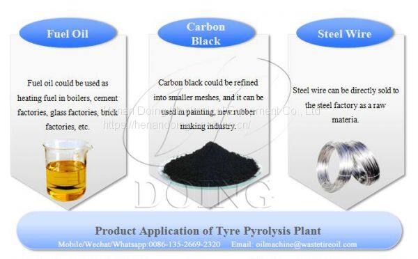 Waste tyre to fuel oil pyrolysis plant with no pollution for sale can convert waste tyres into oil, steel wire and carbon black, whose design is the same as the normal capacity tyre pyrolysis machine, besides the capacity. High output waste plastic to fuel oil pyrolysis plant for sale have different capacity of 100kg and 500kg, used for testing the pyrolysis technology by many customers.