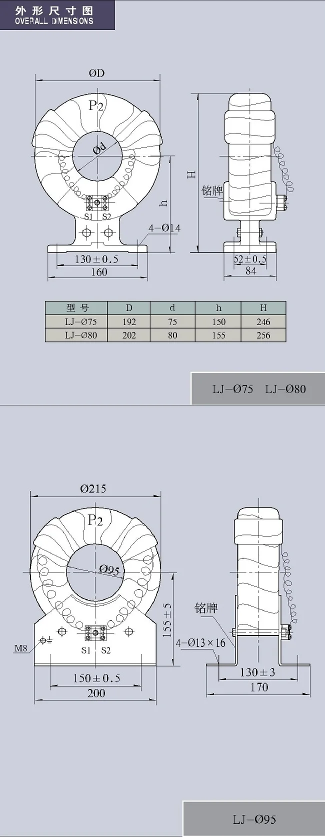 LJ-φ75, LJ-φ80, LJ-φ95 series zero sequence current transformer