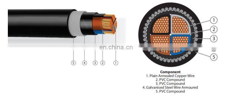 CU/PVC/SWA/PVC,IEC 60502 Standard PVC Insulated PVC bedding Galvanized steel wire armored PVC Sheathed Cable, 0.6/1kV