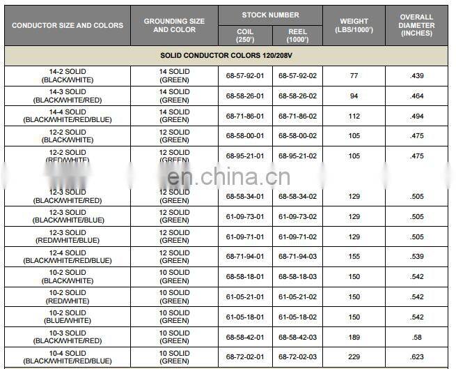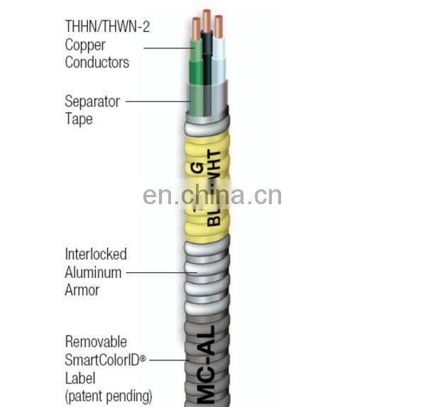 Type 12 Gauge 2 conductors MC solid Metal Clad Cable with Aluminum Armor and Green insulated Ground wire 12/2 12/3 price