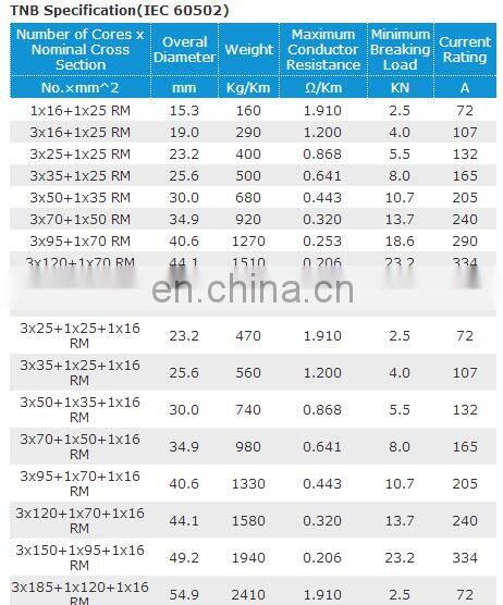 Basic design to BS 7870 / TNB Specification(IEC 60502) / HD 626 S1 / NFC 33-209 / AS/NZS 3560-1 standards