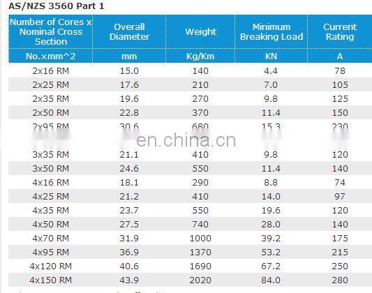 | Model Number | Quadruplex Aerial Bundle Cable | Type | Low Voltage | |