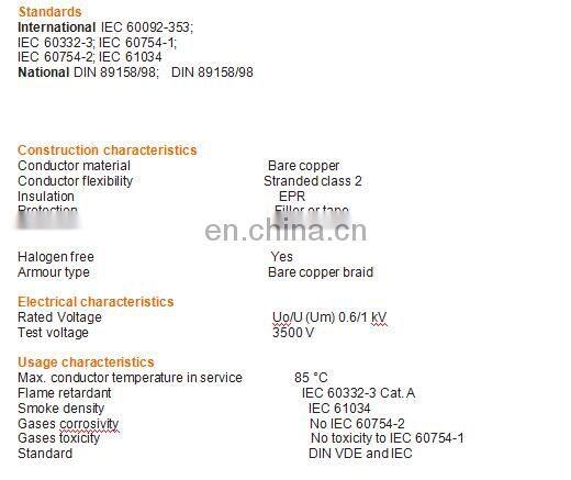 Item name:heavy duty 0.6/1 kV EPR compound insulation copper braiding screen CR sheath polyester layer up Power Cable IEC DIN