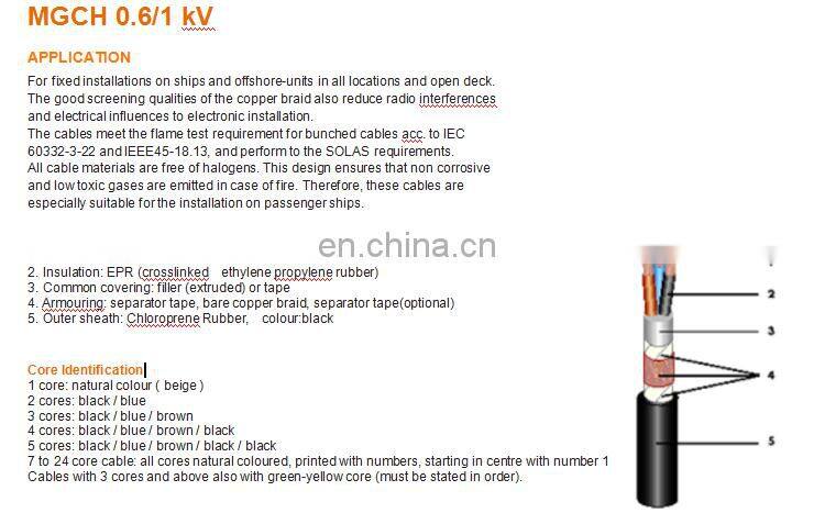 heavy duty 0.6/1 kV EPR compound insulation copper braiding screen CR sheath polyester layer up Power Cable IEC DIN standard: