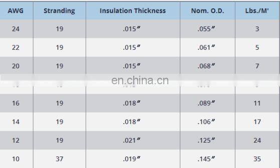 Item name: High temperature wire cable 200C 250C Nickel/Tin/Silver plated copper conductor PTFE/FEP insulation Type EE Mil Spec. 16878/5