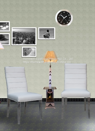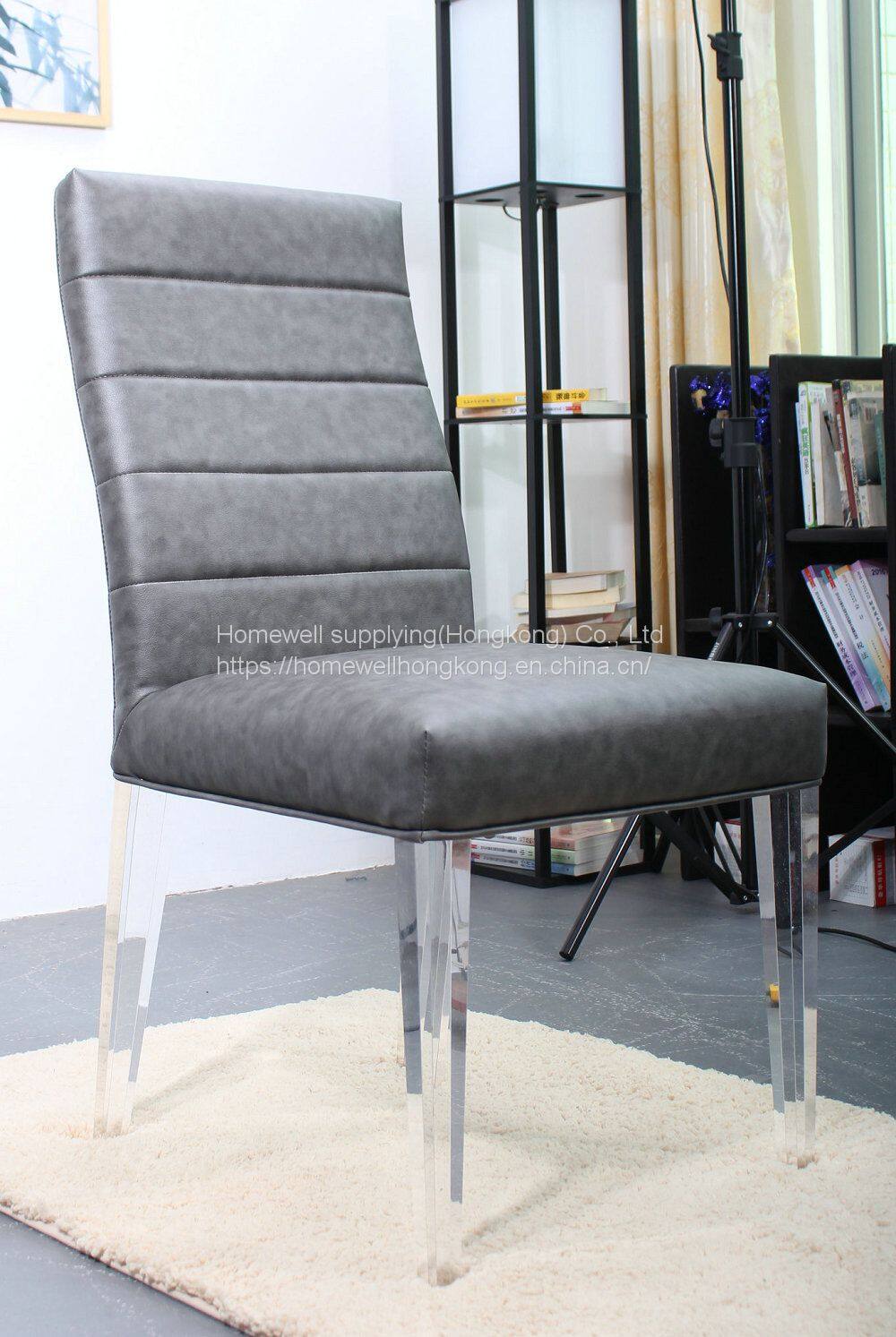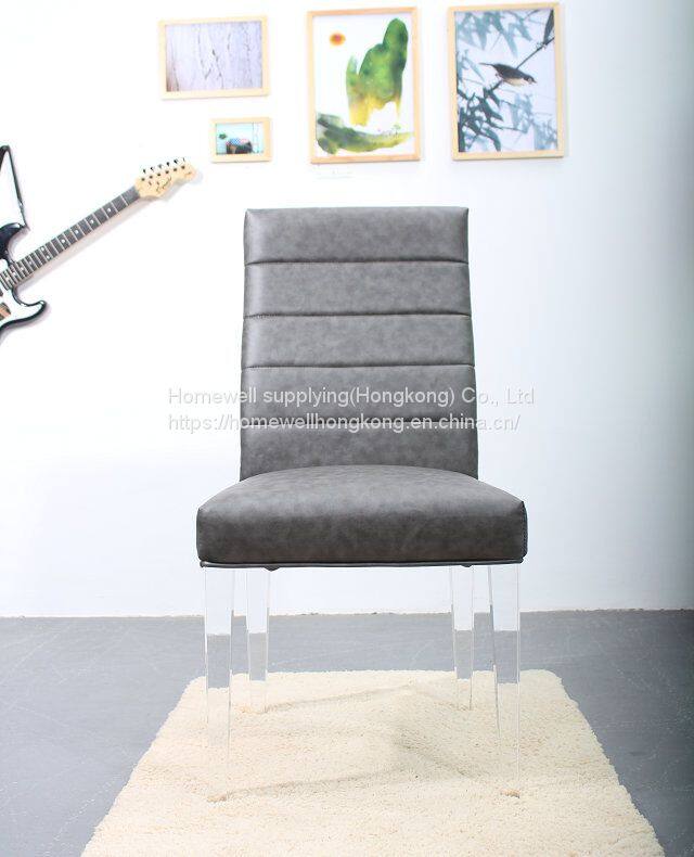 Leathaire fabric cover with sponge and inner solid wood frame with transparent arcylic legs.