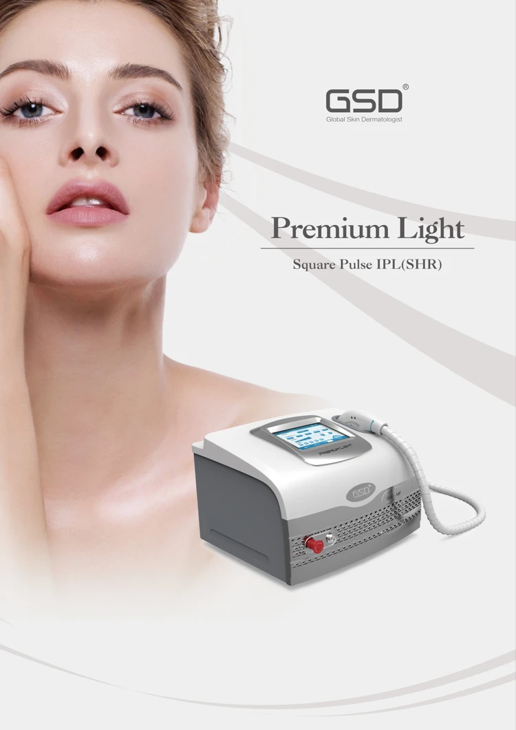GSD Premium Light adopts square pulse SHR IPL, which emits constant accurate energy to ensure optimum clinical results. Easy and customized interface makes it flexible for individual clinical procedure. It is a safe and efficient system for fast and permanent hair removal, skin rejuvenation, acne treatment, vascular and pigmented lesions.
