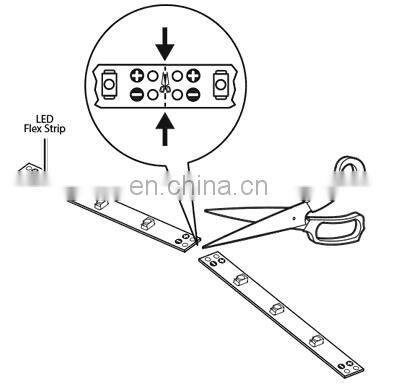 I. Cut along the light strip tape wherever a dashed line divides two sets of positive and negative connection points.