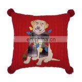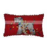Wholesale Decorative LED Red Embroidery Dog, Scarf and Led String With Pompom Seasonal Cushion Throw Pillow for Christmas