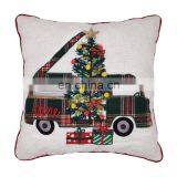 Wholesale Decorative LED Embroidery Tree With Pompom Green Plaid Applique Car Seasonal Cushion Throw Pillow for Christmas