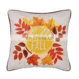 Wholesale Decorative Print Leaves and Embroidery Hello Fall With Trim Seasonal Cushion Pillow Cover for Harvest