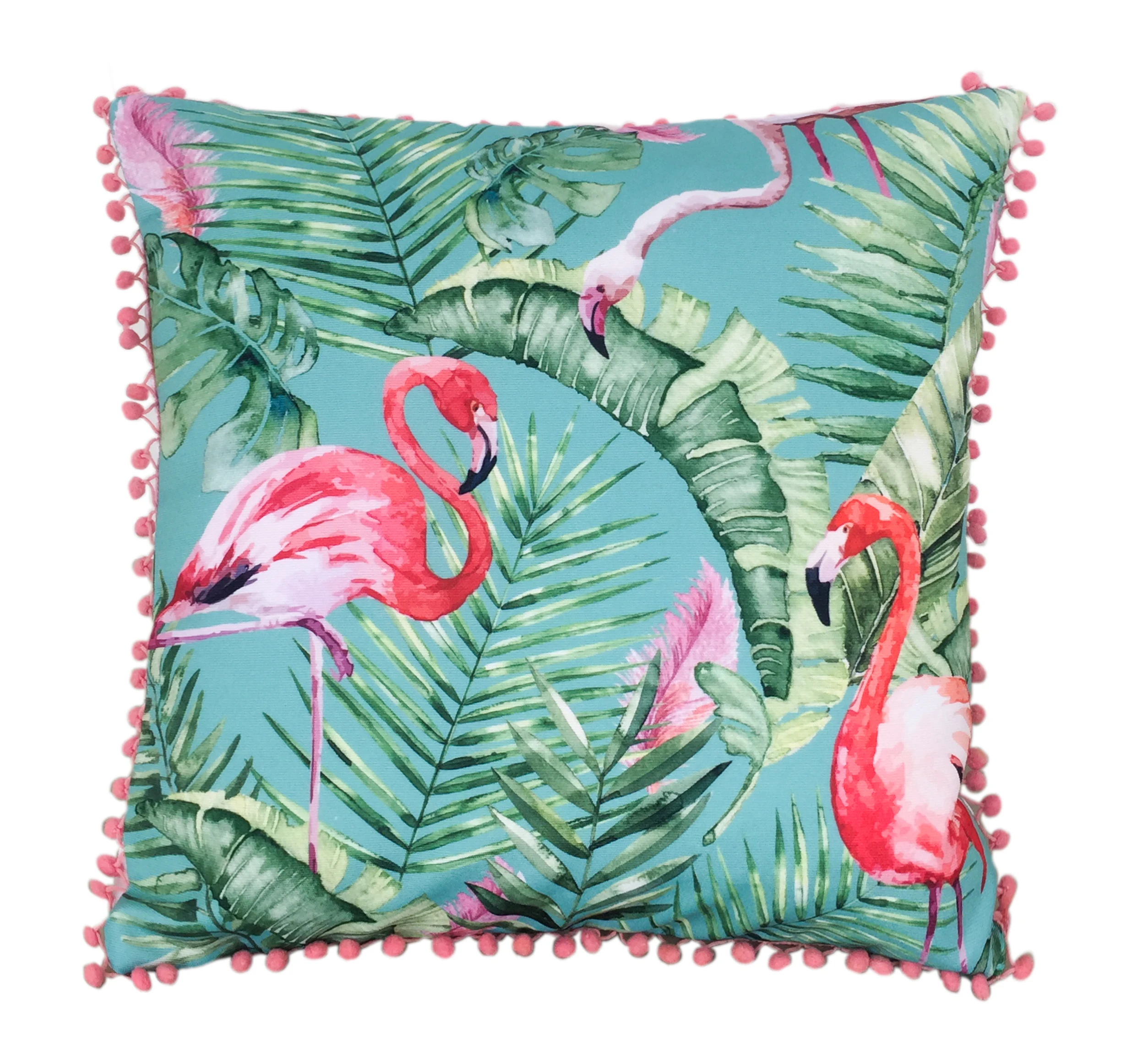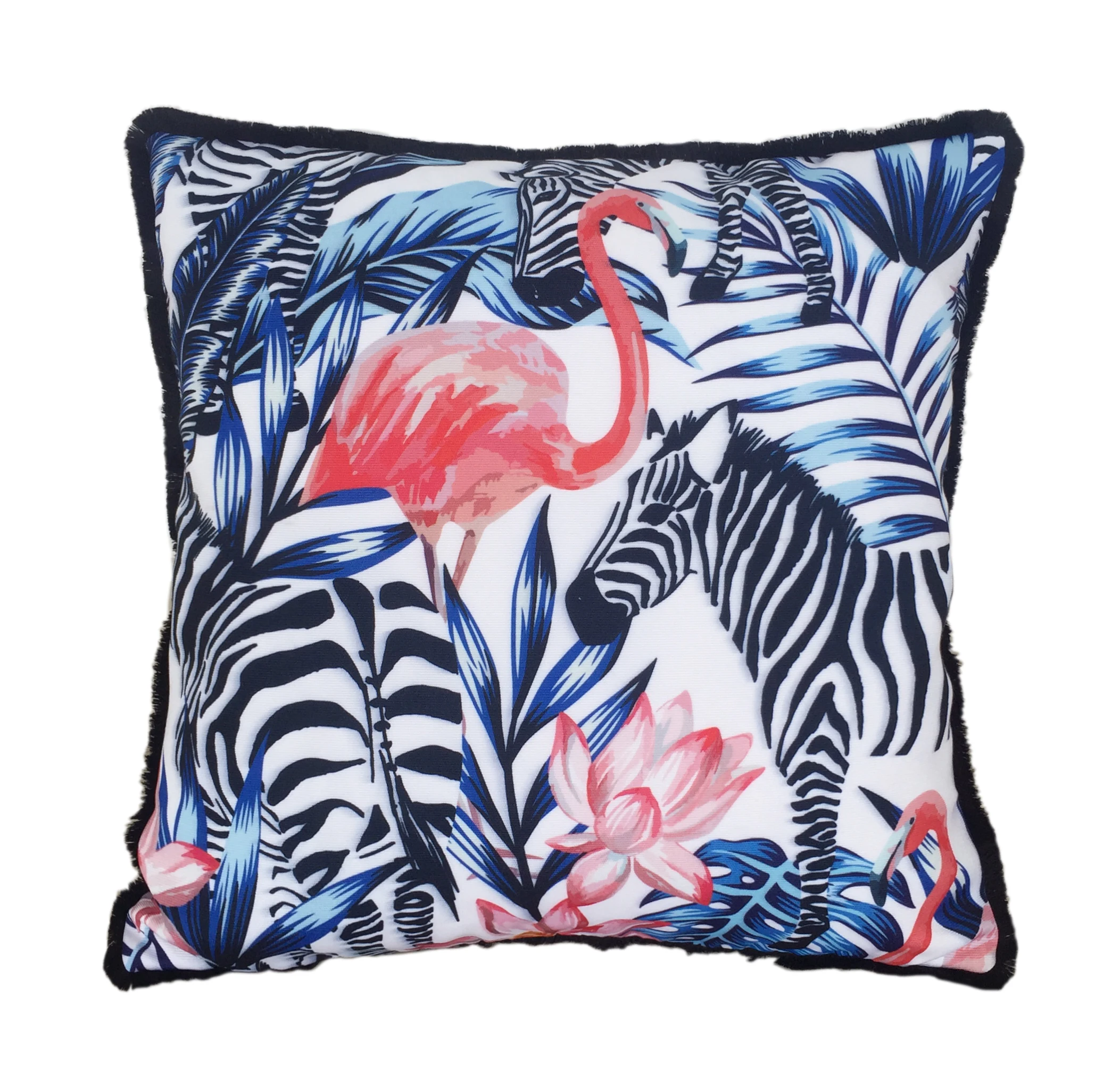 Wholesale Print Flamingo Zebra Navy Tropical Leaves With Tassel Cushion Pillow for Outdoor