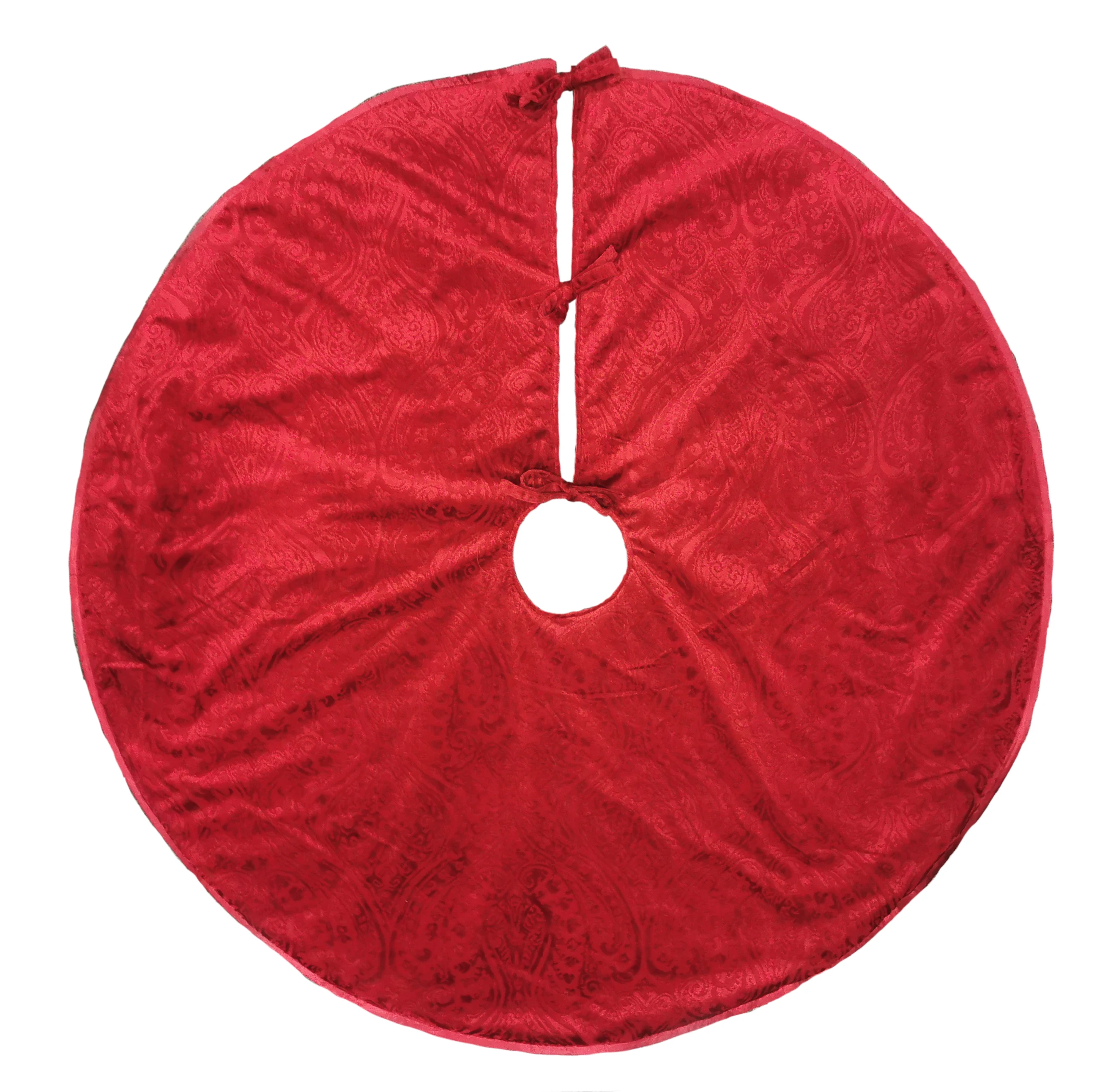 Decorative Jacquard Velvet Red Paisley Tree Skirt for Christmas