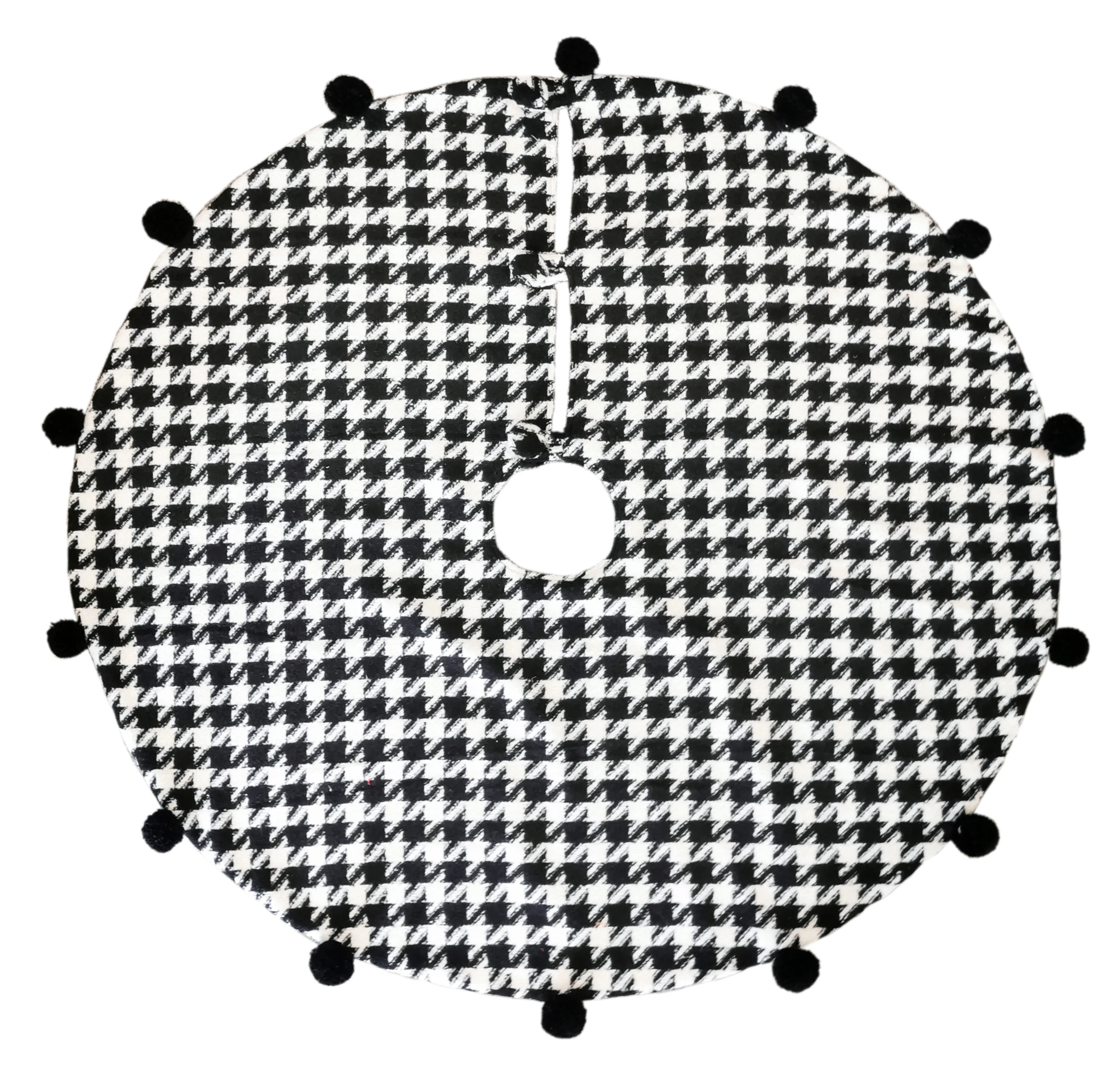 Decorative Black and White Houndstooth With Chunky Pompom Tree Skirt for Christmas