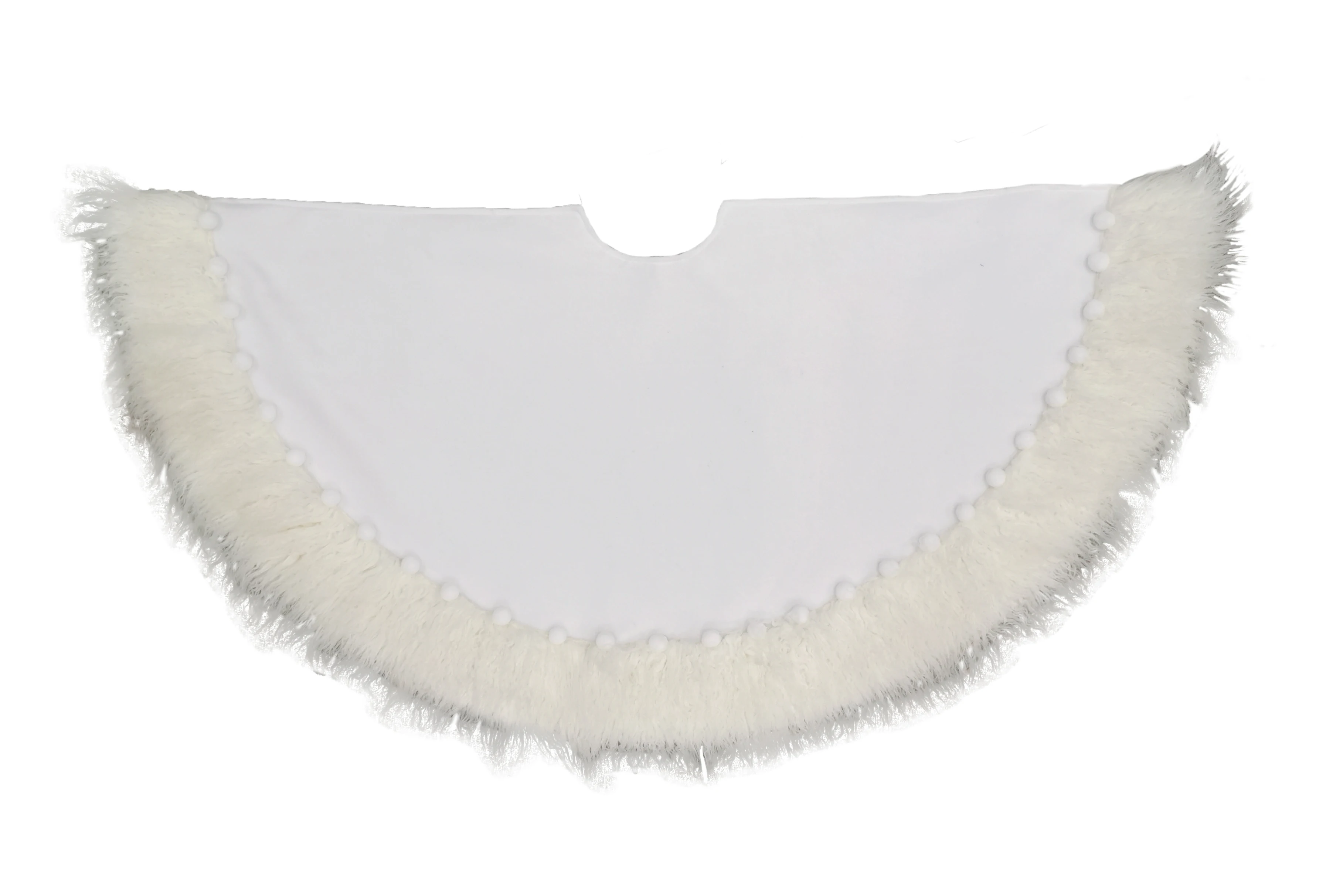 Decorative Solid White Velvet With Mongolia Fur Around Tree Skirt for Christmas