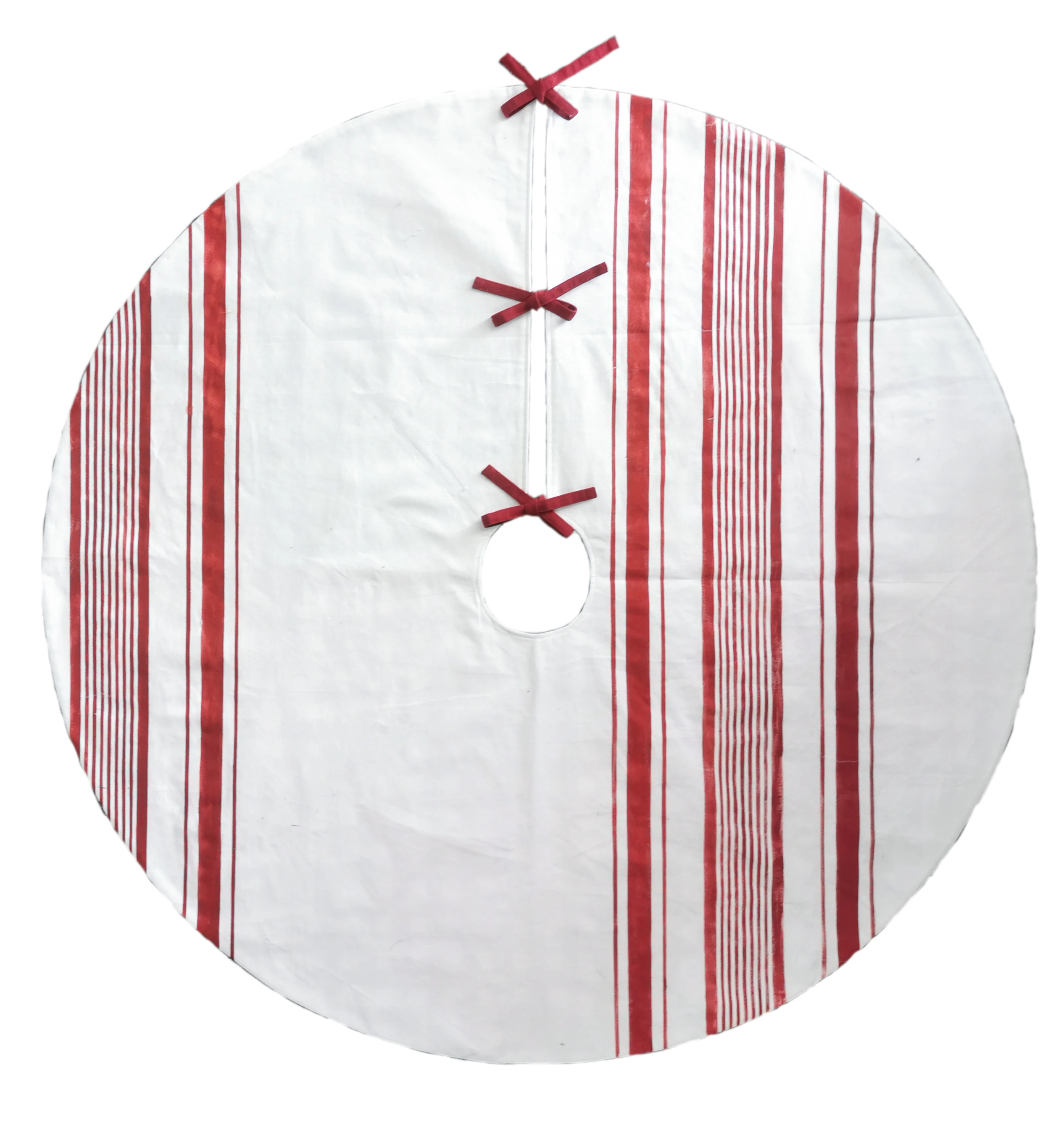 Decorative Print Red Stripe Tree Skirt for Christmas