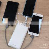 Slim Small Portable Mobile Charger 20000mAh 3 Built in USB Cable Power Bank for IPhone Apple