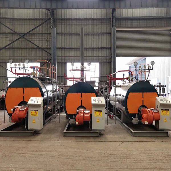 This is a package horizontal- three pass fire tube steam boiler.The bifurcated furnace tank is semi-wet-back structure. The high-temperature flue gas scour the second and third return flue pipes successively, and then the flue gas chamber is discharged into the atmosphere through the chimney.The boiler is fitted with movable front and rear smoke box covers to facilitate boiler maintenance.The boiler is equipped with the world famous burner, adopting the advanced technology of automatic proportional regulation of combustion, automatic regulation of water supply, program start and stop, automatic operation, etc., and has the automatic protection functions of high and low water level alarm, extremely low water level, ultra-high steam pressure, flameout and so on.This type of boiler has the characteristics of compact structure, safe and reliable, simple operation, quick installation, less pollution, low noise, high efficiency, widely used in enterprises, hotels, hospitals, office buildings, civil buildings and other facilities for industrial steam and life and heating steam.