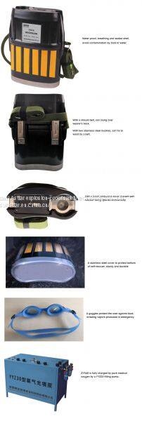It is widely applied for the coal mine and the environment where polluted by poisonous gas or lacked of oxygen gas. The working people wear it rapidly and get away from the disaster area safely.