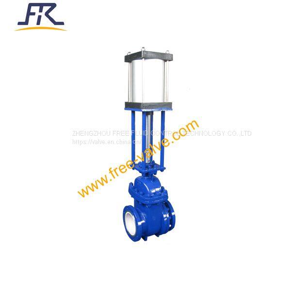 FREE-VALVE’s pneumatic ceramic slag discharge gate valves are a new type of wear-resistant slag discharge gate valve made of wear-resistant ceramic lining on the basis of common slag discharge valve which is easy to erosion and wear. It not only retains the advantages of gate valve structure, but also improves the performance of resistance to erosion and wear.The valve depends on the rise and fall of the disc to realize the opening and closing, the movement direction of the disc is perpendicular to the flow direction of the medium, cutting the medium by cutting the blade shaped disc of fiber material.The valves are widely used as opening and closing valve in hydraulic coal conveying, hydraulic slag discharging and mud conveying pipelines with high hardness particles.