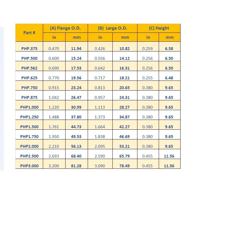 Available for 3/8", 1/2", 9/16", 5/8", 3/4", 7/8", 1", 1-1/4", 1-1/2", 1-3/4", 2", 2-1/2" and 3" nominal size tubes.