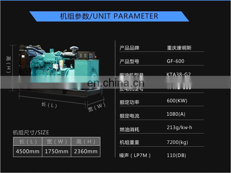 Chongqing Cummins 600KW diesel generator set 600 kw brushless ats fully automated KTA38-G2