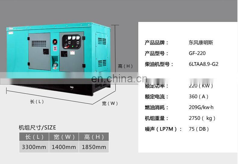 Dongfeng Cummins Silent 220KW Diesel Generator Kilowatts ATS Automatic 6LTAA8.3-G2