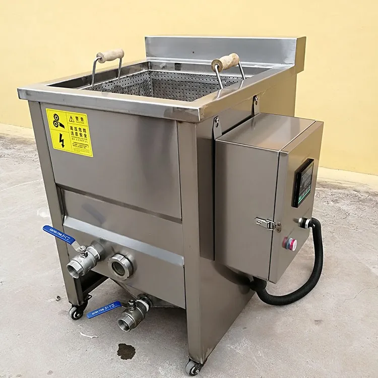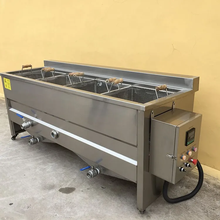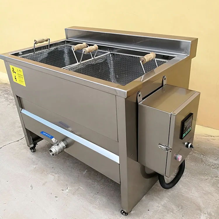 This machine can not only fry food but also blanch hot food. It is widely used in the field of snacks, potato chips, chicken meat, beans, peanuts, vegetables, fruits, etc. The machine uses high-quality 304 stainless steel materials with advanced technology, adopts intelligent digital display temperature controlling device with convenient and practical function. The temperate of oil and water can be both fully controlled by yourself, which can save 40% electricity and 50% oil, very energy-saving and cost-effective.