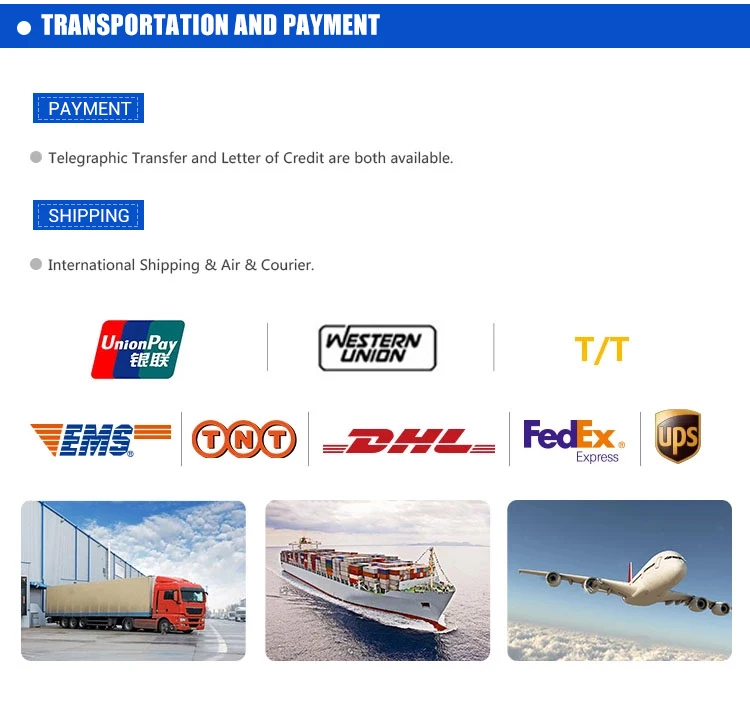 A: Generally we'll take the sea transportation with our forwarder as term CIF and customer's forwarder as term FOB.If a air or express transportation is requested, we can also arrange.