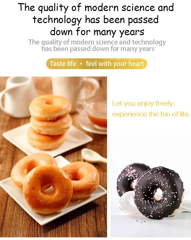 1. The body of this donut machine is made of stainless steel 304, fully automatic donut machine is popular for its high efficiency and accuracy to produce donuts.All sizes of donuts(4-5cm,cm,6-7cm,8-9cm, ) for your choice.