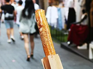 5. Put the churros into 200℃ oil and fry it until gold color.