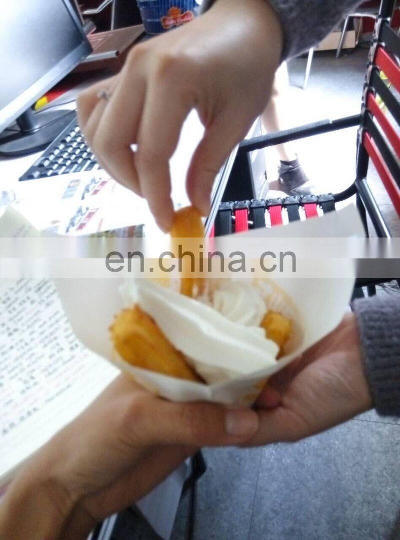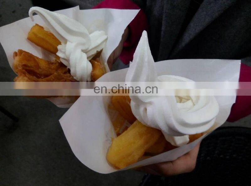 03.put the finish fried churros into food grade packaging paper bag and add some ice cream, chocolate sauce or jams.