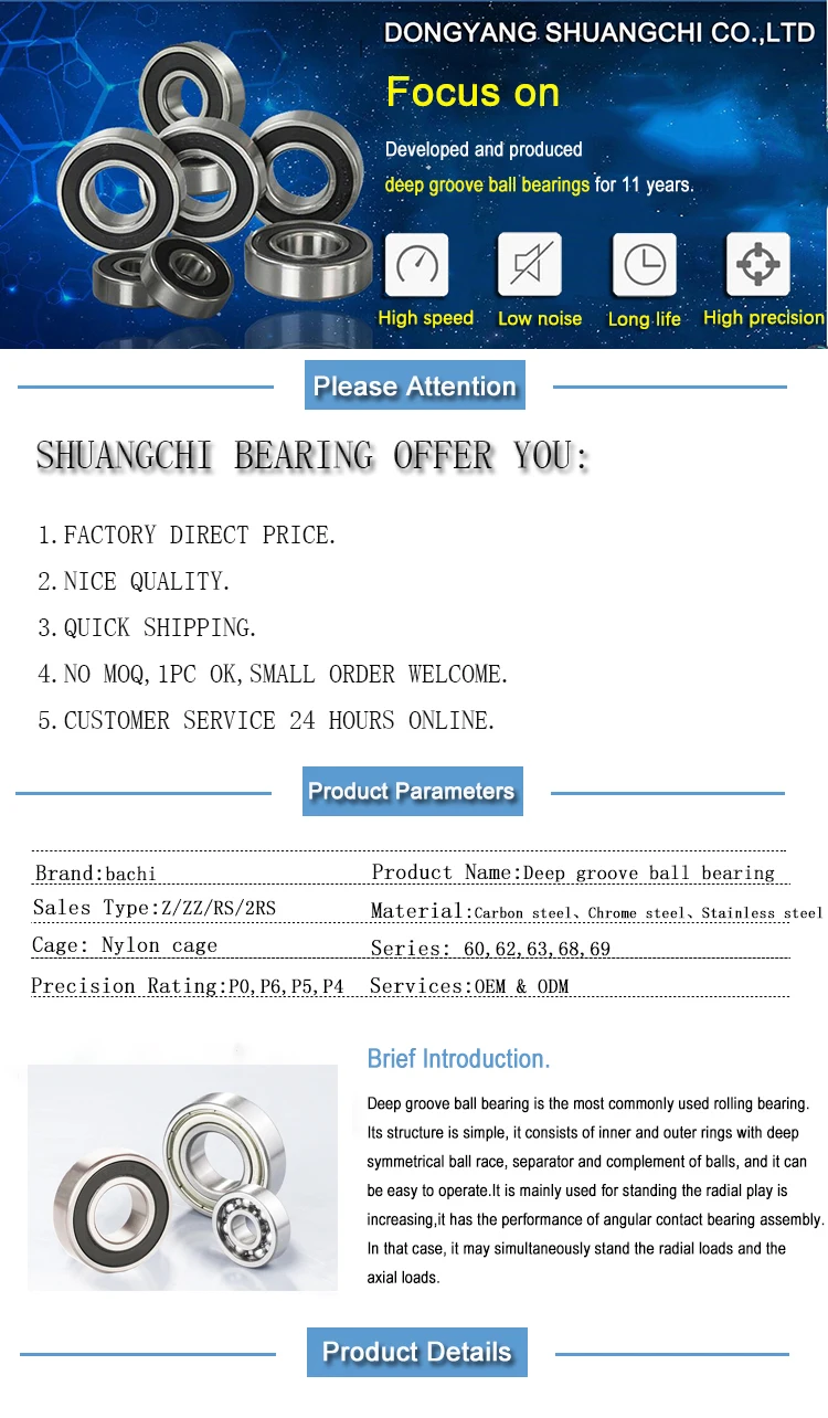 Bachi High Quality Bearing Manufacturing Machinery Deep Groove Ball Bearing 6009 Z ZZ Stainless Steel Bearing Sizes 45*75*16mm