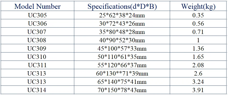 We have many models of insert ball bearings, including UC200 series, UC300 series.