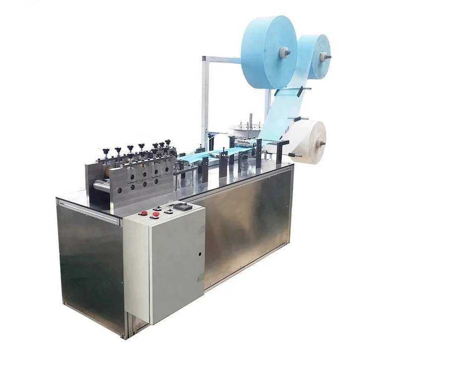 The high-speed film machine adopts ultrasonic welding technology to automatically produce 2-5 layers of butterfly mask body 。Automatically complete the operation, manual feeding and automatic feeding; the included processes include coil feeding, nose beam feeding, mask pattern welding, mask cutting, and main body cutting.The equipment produces the main body of the butterfly mask through the cooperation of the feeding system, the fabric forming system, and the nose beam forming and cutting system. In order to meet the market demand, the mold can be simply replaced to adapt to the production of various types of butterfly mask bodies