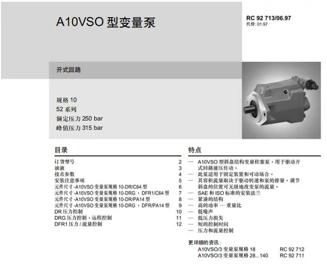 Rexroth A10VSO Series Hydraulic Piston Pump A10VSO28DR/31R-PPA12N00 A10VSO28DR/31R-PPA12K01