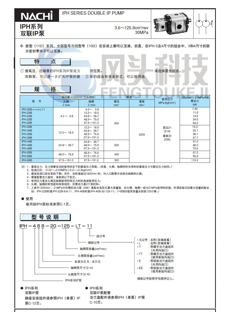 1. Combine the high-pressure, low-noise IPH series and IP series into a double pump type to further expand the use of IP pumps.
