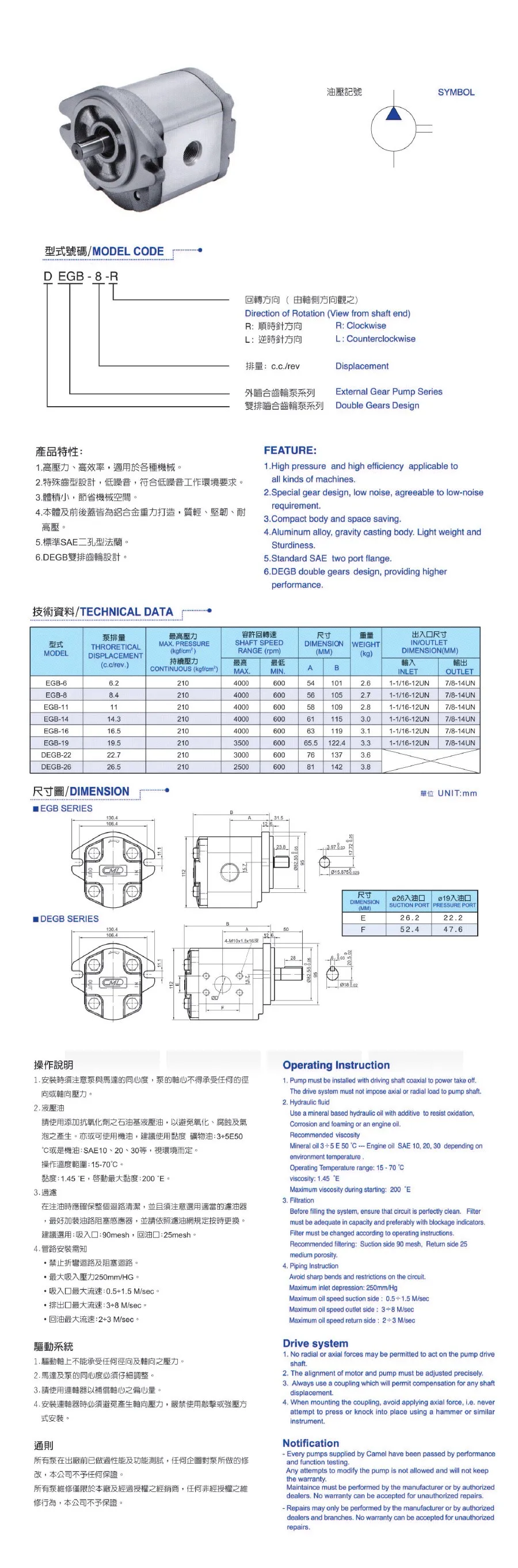 TAIWAN CML "EGB" Series Gear Pumps