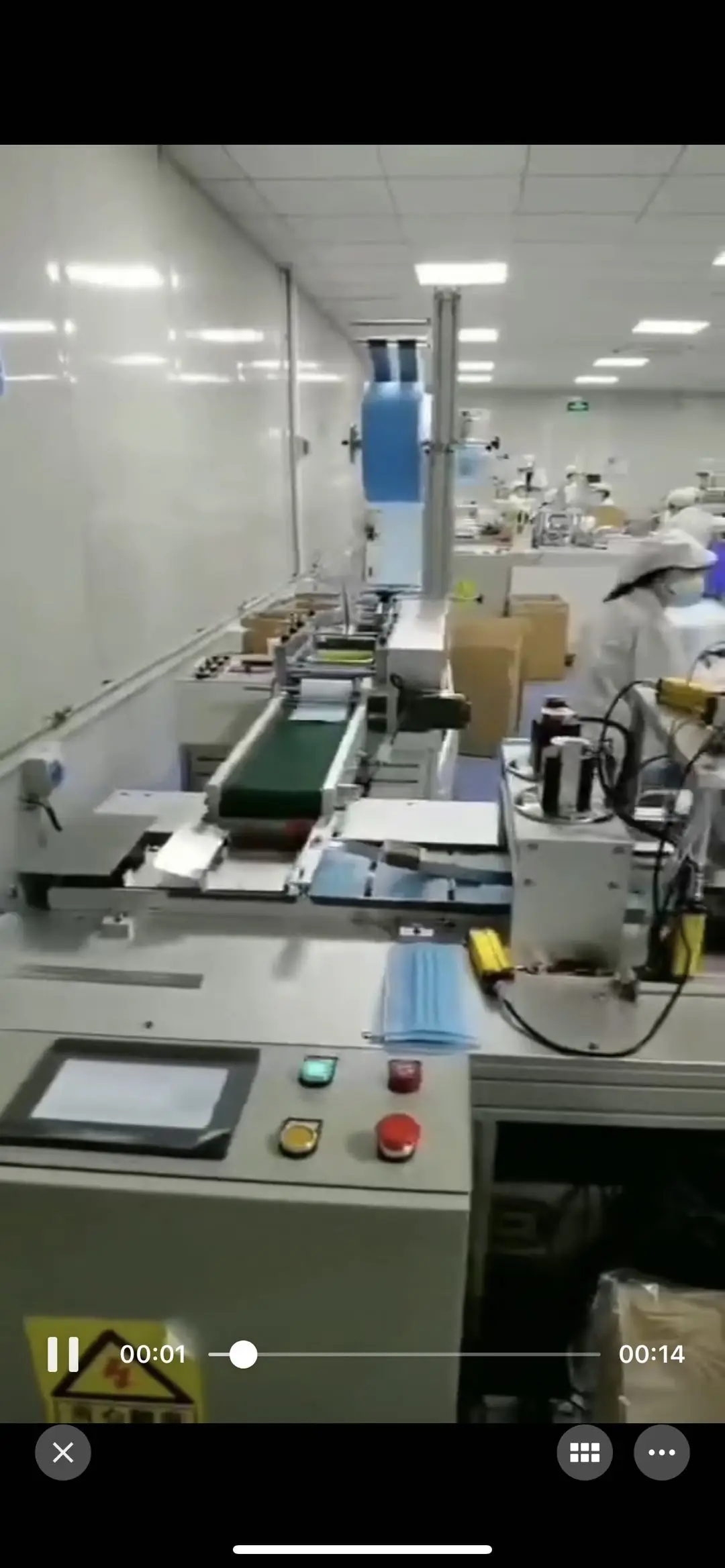 Equipment Parameters 1. Specification requirements: The machine is able to produce ear loop mask of below 4 layers (no sealed edge) for adults (dimensions: 175 mm * 95 mm). 2. Suggested specification of raw materials: PP spunbond PPSB----200 mm*36 g, melt-blown----195 mm*28g, PP spunbond PPSB----195 mm*18 g; suggested nose wire: Single-core general type. 3. Technical specification: (1)Model: SX-921S (high-speed servo welding ear loop plane mask machine) (2)Dimensions of machine: 4,210 mm (L) *2,280 mm (W) * 1,985 mm (H) (3)Total weight of machine: About 2,300 kg (4)Mask specification: 175 mm*95 mm (adult) (5)Production speed: Above 85 pcs/min (5,000 pcs/hr normally) (6)Power: Single-phase AC 220V 50HZ 9.8 kW (7)Air source: 5---7 bar (the air supply source is above 180 L/min) (8)Control mode: PLC control + Touch screen operation |