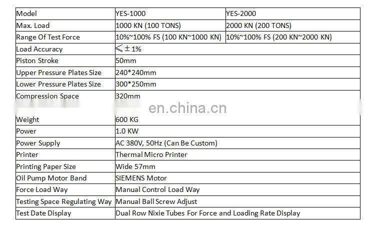 YES-1000/2000 Hydraulic Power Concrete Brick Compression Testing Machine Used In Construction Laboratory
