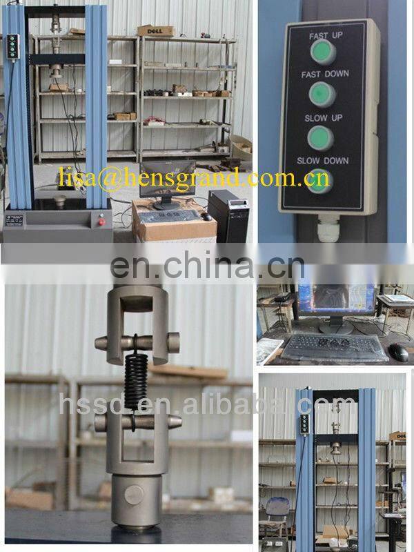 spring tension and compression testing machine, which is a special device for spring test and it is manufactured in terms of technical requirements stipulated in JB/T7796-2005 <Technical Conditions for Spring Tension and Compression Testing Machine>. It is mainly used for testing spring test force and strength of elastic element, namely in a certain deformation (or remaining highness) testing the spring force or testing spring remaining highness or deformation under certain test force. With test force showed, speed setting, batch test set and other functions. Meanwhile, it also has limit protection and overload protection and other functions.