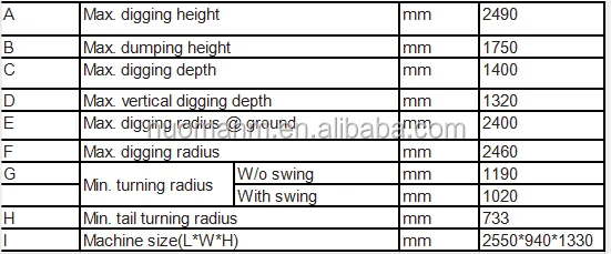 Platform end radius of gyration | 733mm | Maximum digging depth of earth shovel | 175mm | ||