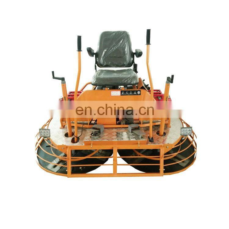 Suitable for leveling work of large area concrete surface, high quality and high working efficiency. Operating with double plate is easy and flexible. It is a ideal equipment for construction. Dynamic Ride-on power trowel series could greatly increase work efficiency for surface of concrete raised paste and trowel, smooth out. Widely used in building large area ground like factory, warehouse, square, and so on.