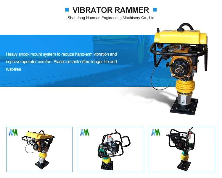 The machine is used for compaction of road soil backfill.The double spring derive can effectively buffer the force transmitted to the operating handle and mainly parts.Using crankshaft and connecting rod structure instead of traditional crankshaft cantilever structure. Internal combustion type rammer and manual throttle controller is easy to operate.The inner cylinder adopts keyway-free structure, which can double the service life of the inner cylinder.It is easy to dismounting and repair, low in cost.