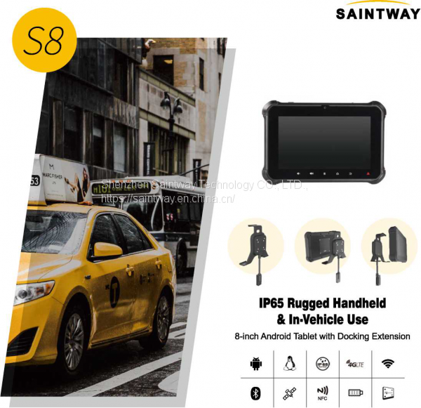 S8 is an IP65 grade 8-inch rugged Android tablet which is designed to withstand rough handling, like outdoor or in-vehicle harshest environment use. As for its CPU and OS, S8 is powered by Rockchip RK3288W ARM* Cortex™-A17 quad-core with Android 7.1 Nougat system or Linux (Ubuntul8.04). It also integrates optional modules like WiFi, 4G ITE/3G cellular; Bluetooth, Gigabit Ethernet for data transmission and NFC for identification. Meanwhile for in-vehicle use, it has functional interfaces such as RS232, RS422, USB host, etc, which is suitable for many applications such as fleet management, public transit, mining, precision farming, logistics and industrial control etc.