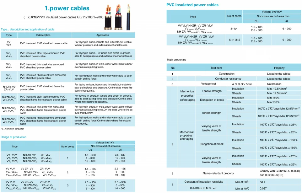 2.PVC insulated power cable and xlpe insulated power cable with or without armor upto 35kv.