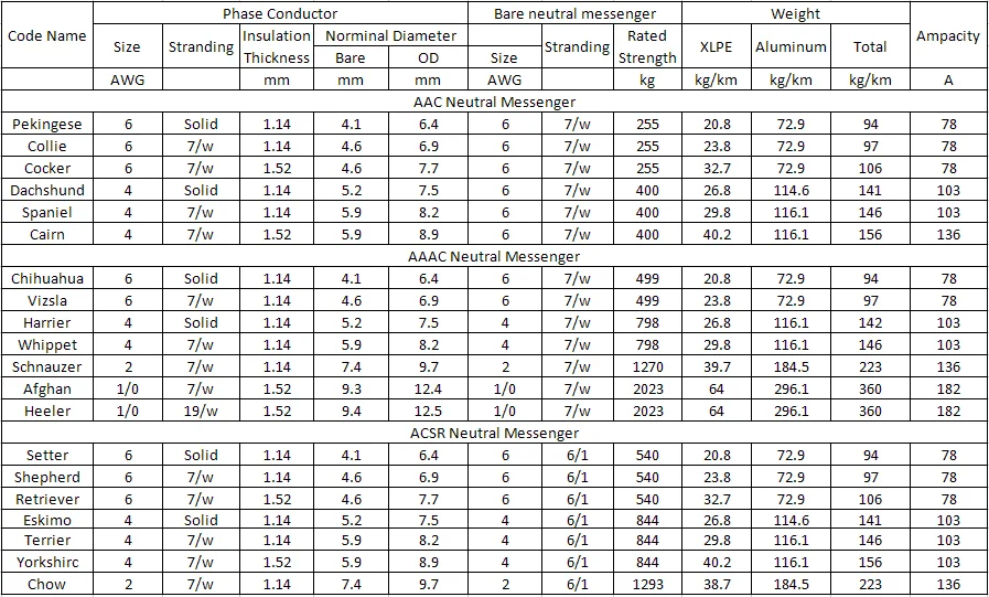 Overhead Duplex/Triplex/Quadruplex Xlpe Insulated ABC Cable Sizes